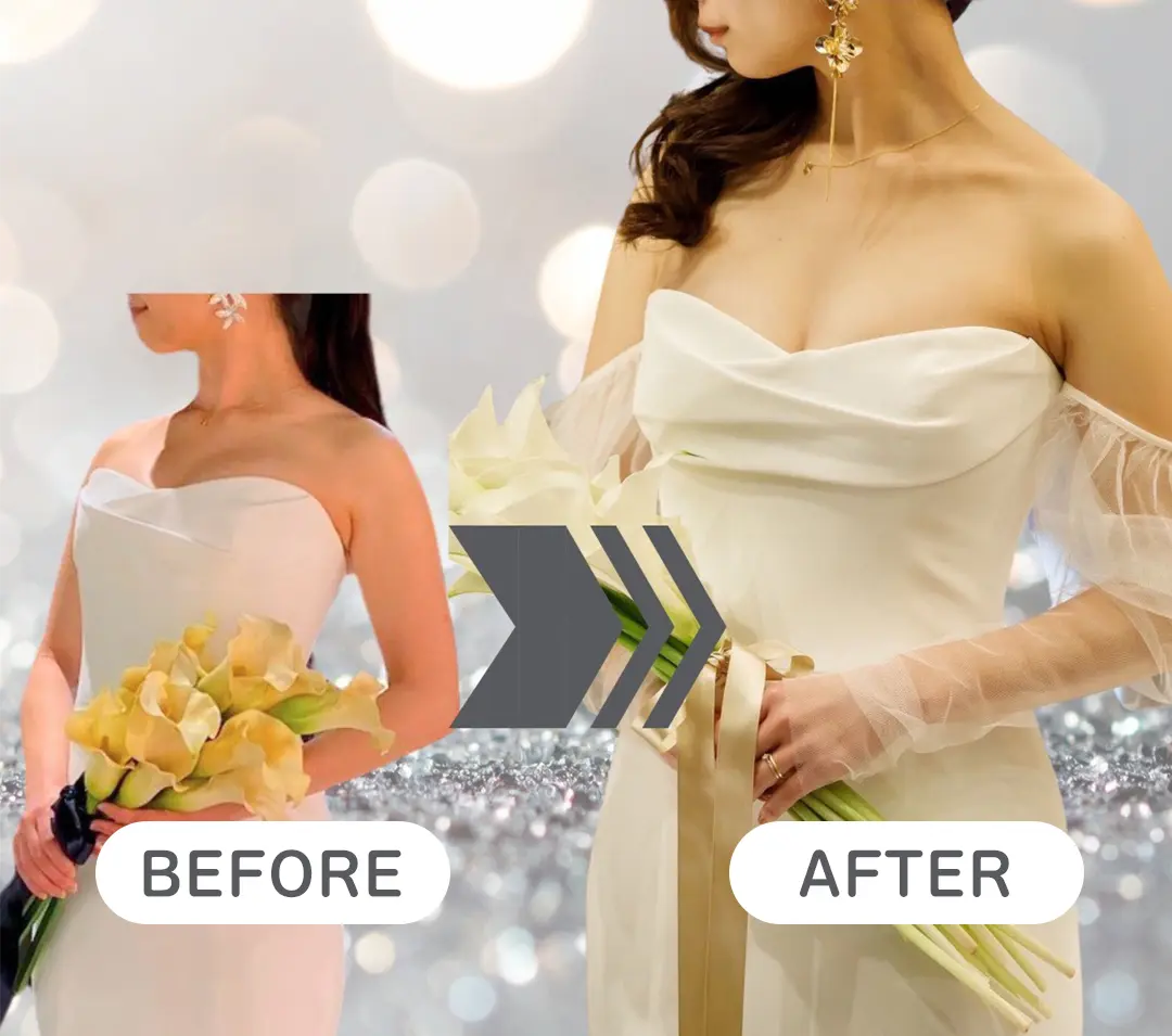 さらに、肋骨からアプローチして理想のくびれをデザインし、どの角度から見ても完璧なドレスラインを創り上げます。